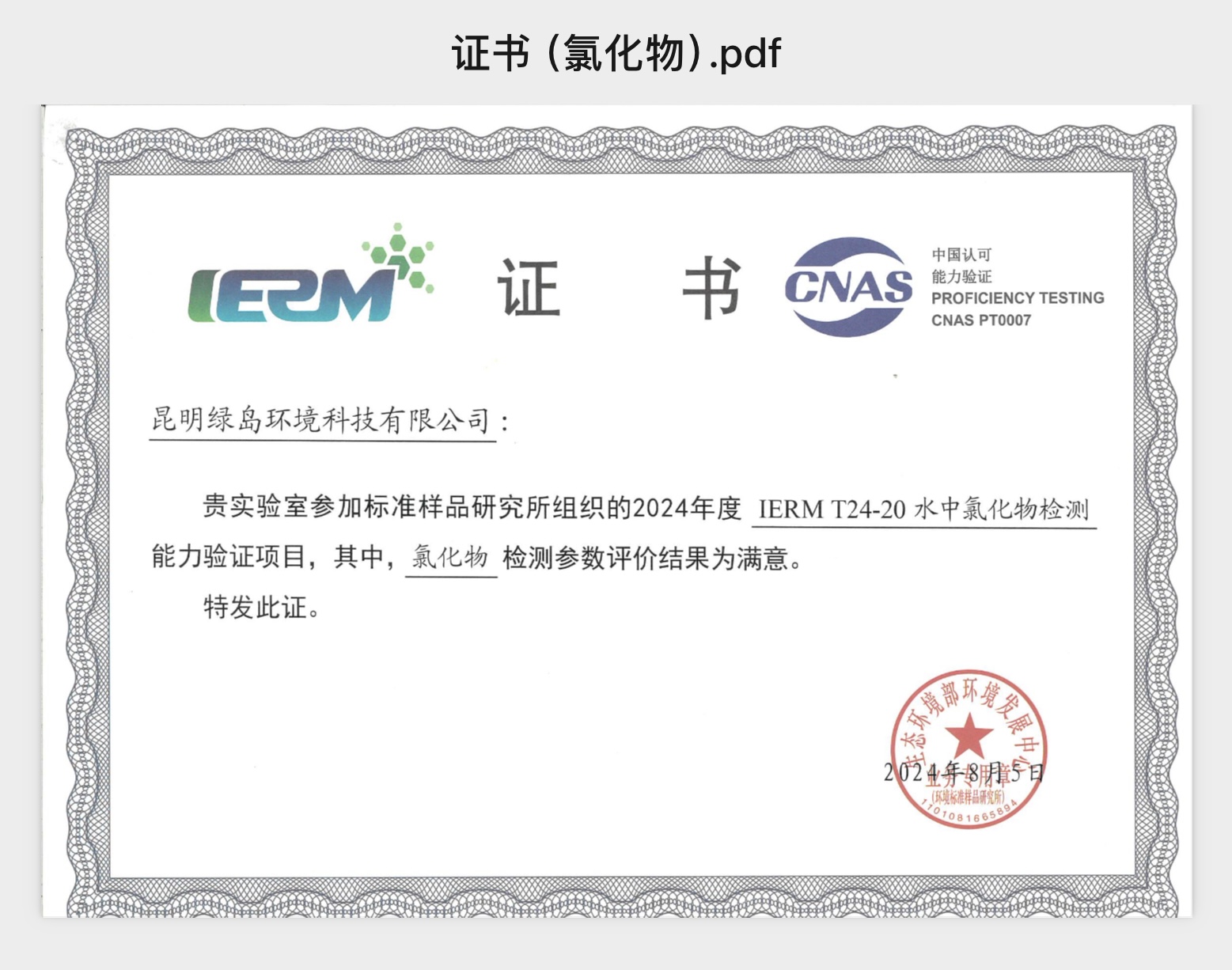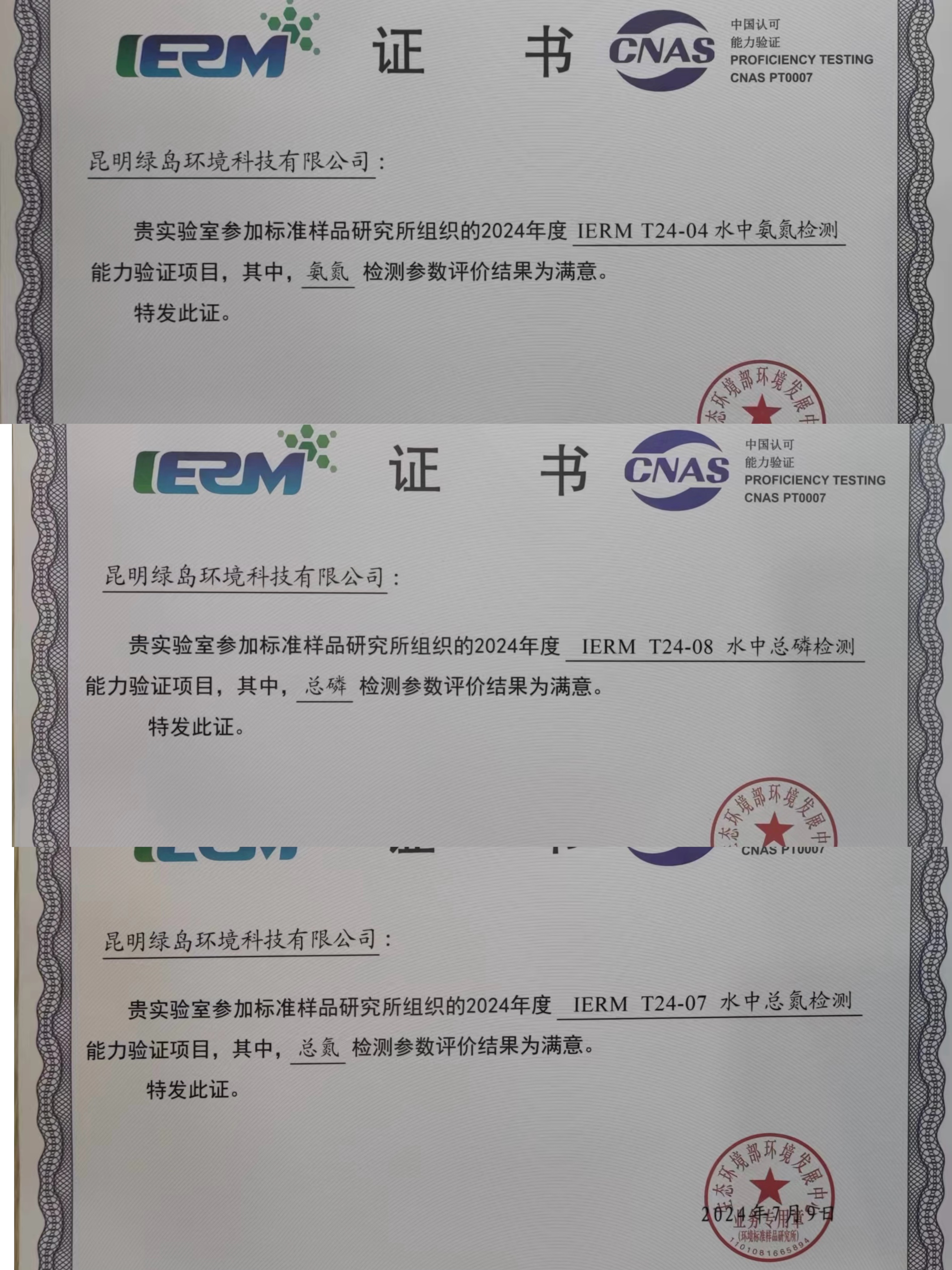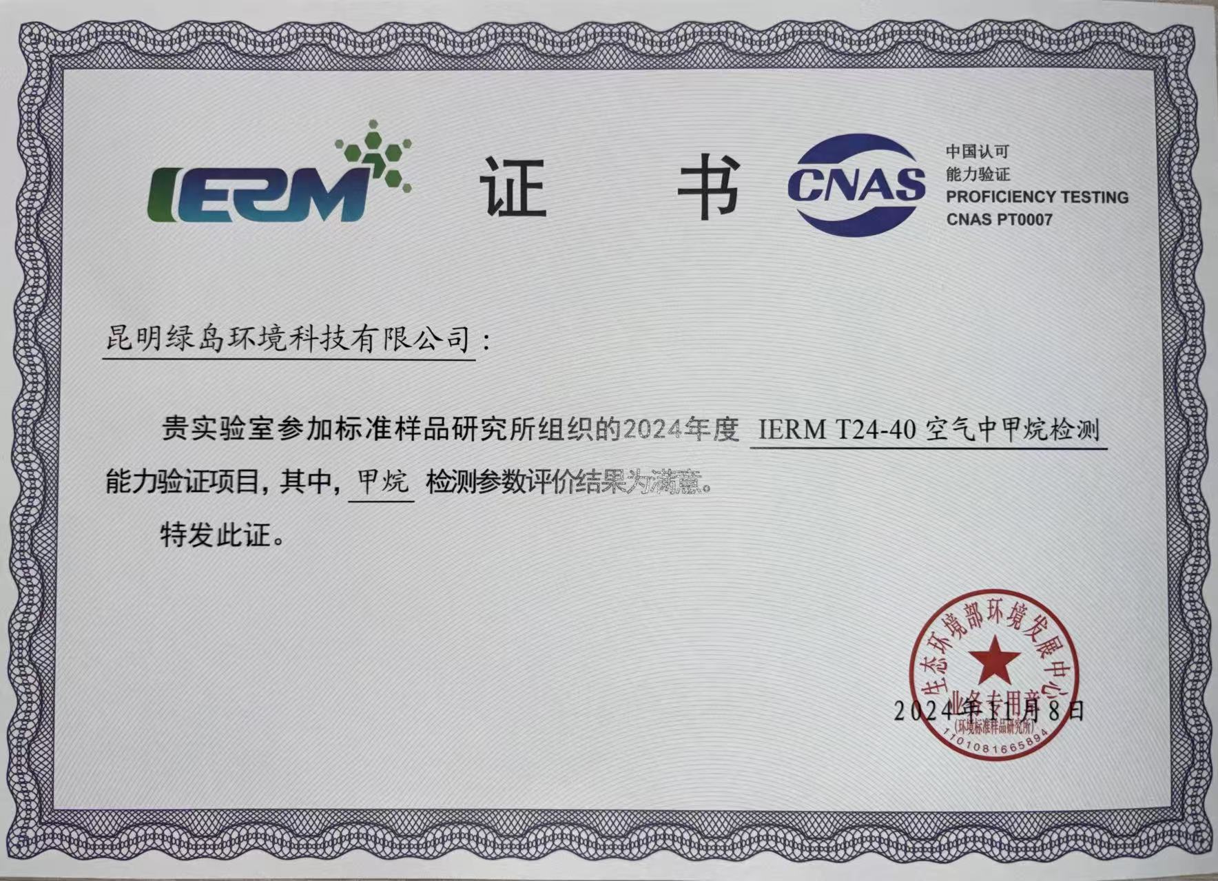 強化能力建設 夯實發(fā)展根基(四) ——昆明綠島環(huán)境科技有限公司喜獲2項能力驗證證書
